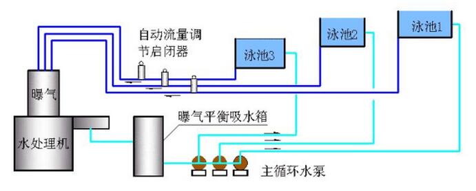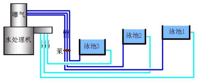 哪一辦法好,哪一辦法省,就使用那一種。數池使用一套游泳池水處理設備,與各池不同循環周期毫無矛盾,各池的循環水量,可以通過各池的水泵來實現,也可以通過調節各池進水口、出水口圓滿得到解決。