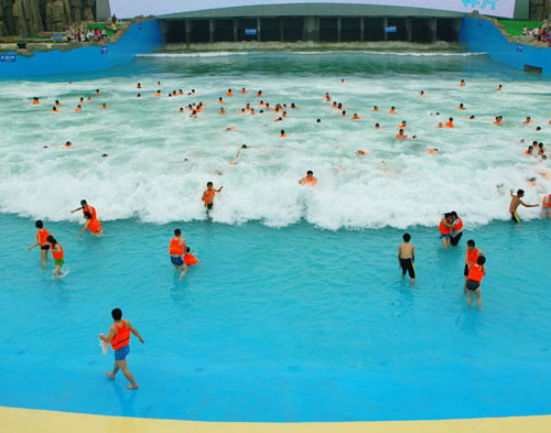 真空造浪又稱海嘯造浪,使力傳感系統(tǒng)進行采集真空,以瞬間控制真空筏門開啟進行造浪。可以造1.5米的連續(xù)浪和最高3米的巨浪,真空造浪池的面積一般在5000~20000平方米之間,可以一次容納幾千人,突然一個一個巨浪撲面而來,瘋狂壯觀的場面令人屏息,甚至連旁觀者都感受到那份刺激。