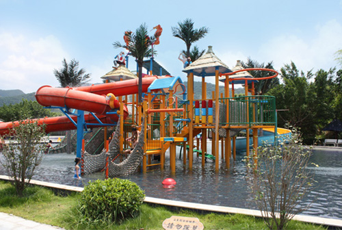 水上樂園設(shè)備:水寨是以加勒比海盜為主題的中型互動(dòng)水上城堡,占地面積約400平方米,高9米,5道滑梯,1個(gè)中型翻桶。